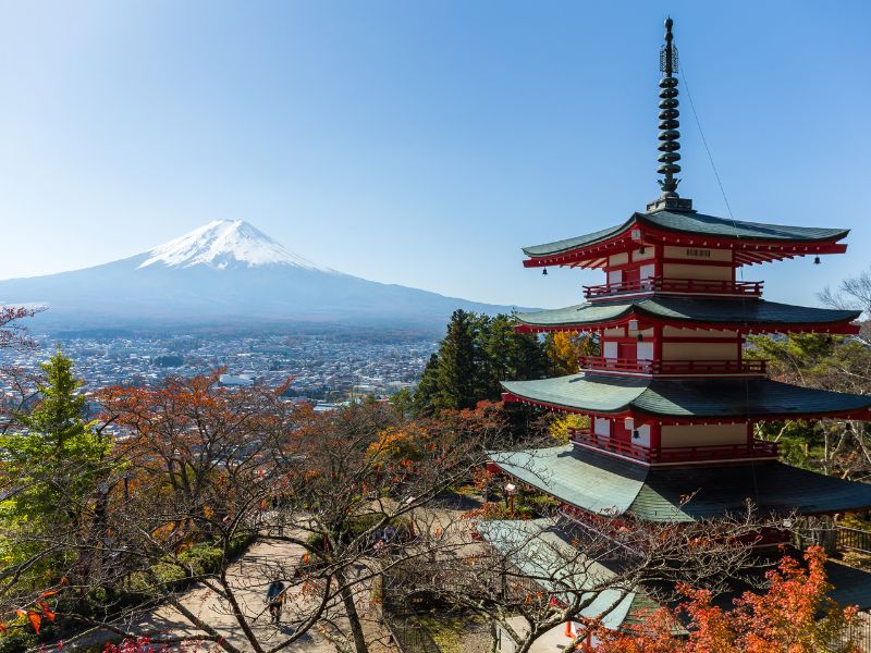 Para disfrutar de la espectacular vista, tendrás que subir los 398 escalones que conducen desde el santuario Arakura Fuji Sengen hasta la pagoda de cinco pisos, así que asegúrate de llevar calzado cómodo.