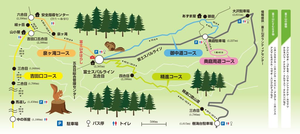 Aunque está en inglés, puedes ver un PDF de la guía de la zona alrededor del Monte Fuji.